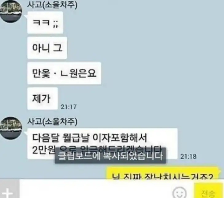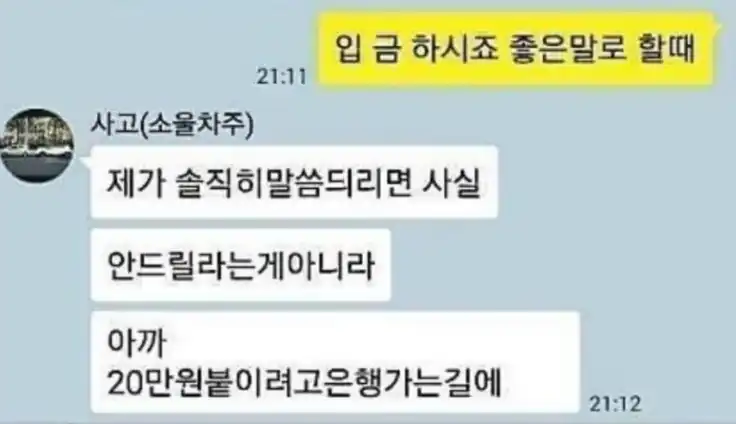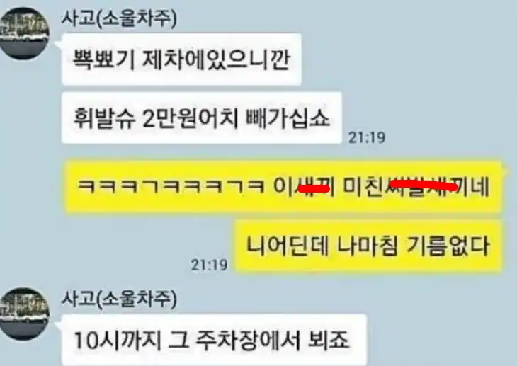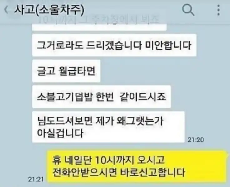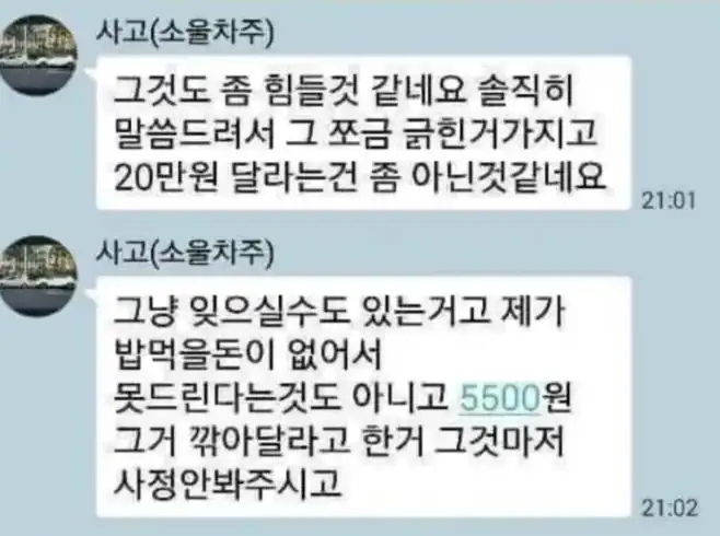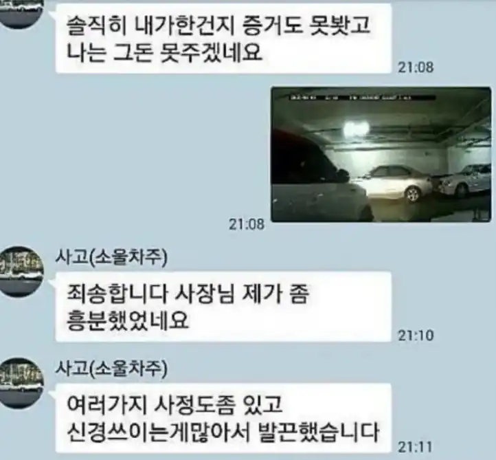 사고난 뒤 돈을 안 주겠다는 소울 차주…